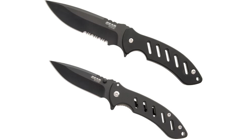 The Bear Edge 71700 Is A Combo Set That Features A Brisk 1.0 Medium And Brisk 1.0 Fixed Blade With A Ballistic Sheath. The Brisk 1.0 Medium Is A Frame Lock With A 3-1/4 Black Powder Coat Finish Blade Made From 440 Stainless Steel. The Brisk 1.0 Medium Also Features Dual Thumb Studs As Well As A Blade Trigger For A Smooth And Easy Opening. A Pocket Clip Is Also Installed Onto The Back Of The 4-1/4 Handle That Allows For Tip-down Carry. The Overall Length Of The Brisk 1.0 Medium Is 7-7/8 And Weighs 3.8 Ounces. The Brisk 1.0 Fixed Blade Is Full Tang With A 4-7/8 Black Powder Coat Finish Blade Made From 440 Stainless Steel. The Brisk 1.0 Fixed Blade Also Features A Ballistic Sheath For An Easy Belt Carry. The Overall Length Of The Brisk 1.0 Fixed Blade Is 9-3/4 And Weighs 7.8 Ounces. Both Knives Feature A Lanyard Hole As Well As A Finger Groove.![]()