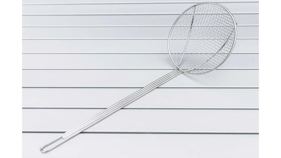 The Camp Chef Skimmer w/ Long Handle SKM06CC helps keep oil clean. It features an extra long handle for convenience with a quality nickel-plated finish.![]()