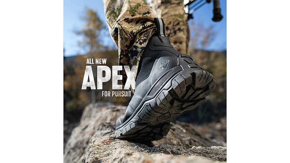 The Apex Collection, all new from The Original Muck Boot Co. The Apex is a high-performance boot built on an innovative platform for high endurance outdoor pursuits requiring a more athletic and agile boot. 100% waterproof and coupled with breathable mesh linings to provide elite protection and moisture management. The upper features a lock-down zipper closure system, a natural scree collar and surprisingly light-weight performance for great all-day comfort and fit. Equally at home on loose rocky terrain, cold/wet ground and of course, the MUCK.![]()
