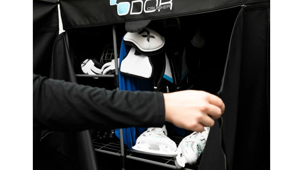 Now you can deodorize and dry your gear fast using the odor-crushing power of Ozone technology + heated air. The dual functionality and size of the Odor Crusher Dry Clean Closet means it can tackle odor and moisture on your teams gear without breaking a sweat! Need to eliminate odors on a lot of gear at once? The Odor Crusher Dry Clean Closet is an absolute UNIT, perfect for your roster. Ideal for deodorizing lots of big, bulky gear alongside your hangable uniforms, this is the largest self-contained product in the Odor Crusher line. Featuring an AC wall plug, Low, Medium and High power settings and independent cycle times for heated air and Ozone; Choose between heated air cycle times of 1-3hrs, and Ozone cycle times of 15min-1hr. Plug it in, fill it up, pick your settings and walk away!![]()
